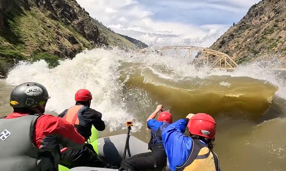 The Lake Creek Bridge, located just upstream of Riggins, Idaho, was originally built in the late 1930s by the Civilian Conservation Corps (CCC) as part of a road project connecting Riggins to French Creek along the Salmon River. The first bridge, a narrow suspension span, was destroyed by fire in 1947 and later replaced with the modern steel-and-concrete structure that stands today. The bridge has long served as a vital link for river access and local travel—marking the famous Lake Creek Rapid and helping open this remote stretch of canyon to recreation and commerce.